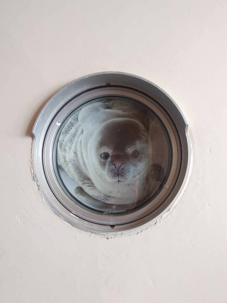 船窓からアザラシがこっちを見ていました。